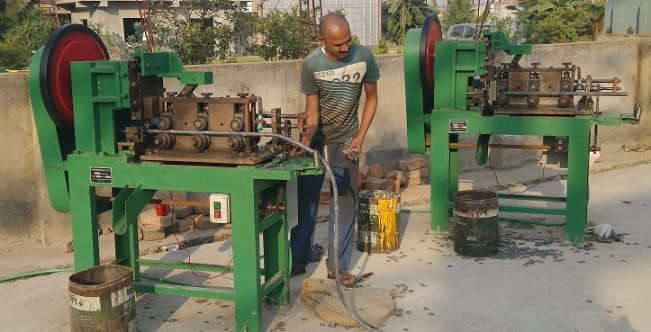 Spring Lock Washer Cutting Machine is to cut continious coiled raw coiled into separate spring washer.